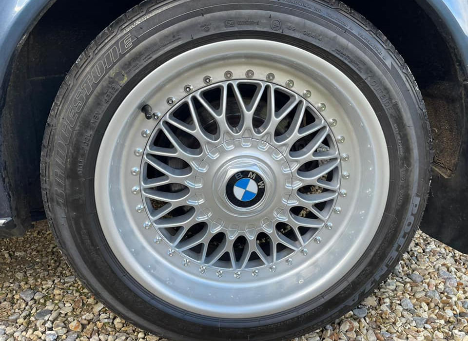 As previously mentioned the car has been lowered using good quality items to enhance not only the look of the car but also the performance as it goes round corners like it’s on rails, helped by the larger modern wheels and the fresh premium tyres we have fitted as part of its recommissioning program… but the performance upgrade doesn’t stop there. The car is fitted with a front strut bace supplied by Fritz Bitz, the well known UK based BMW specialist. On an initial test drive we did wonder if this car had had a performance cam shaft fitted as it really does shift but on inspection it did not seem out of the ordinary. It does however appear to have had its ECU chipped and the car is equipped with a full Fritz Bitz stainless steal exhaust system, including their stainless manifold set up. It sounds glorious accentuating the roar of the legendary M30 three and half litre engine.